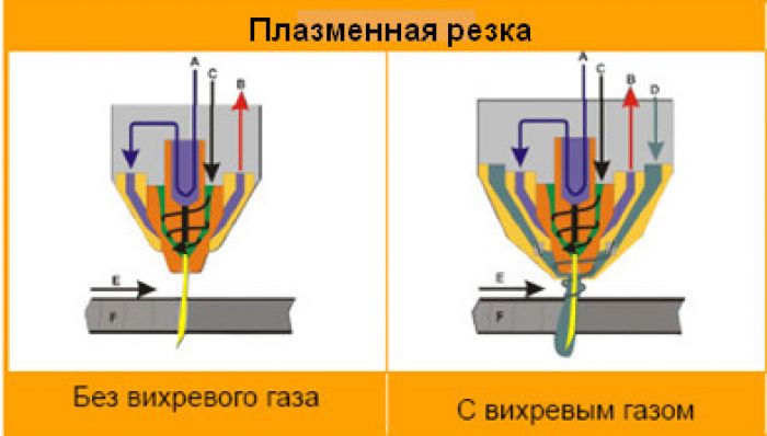 Для создания струи плазмы, во-первых, необходим ионизированный газ (в зависимости от применения и точности, используемого материала и желаемой постобработки (под сварку, под покраску и т.д.), давления и типа технического газа), вихревой газ, который окружает и защищает плазменный столб (см. рис.2).