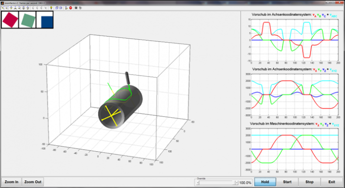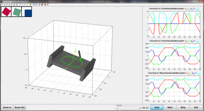 Для моделирования и отработки особых кинематик, компания Eckelmann применяет специальный программный пакет, разработанный в среде MatLab. Контроллер ЧПУ при помощи входов и выходов присоединяется к программному пакету, в котором в режиме реального времени моделируется вся механика станка, в том числе и привода.