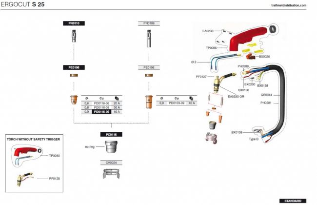 Плазмотрон ERGOCUT S25 оборудован запатентованной системой поджигания плазменной дуги без использования высокочастотного осциллятора. ERGOCUT S25 K специально разработан для источников питания, имеющих встроенный компрессор. Идеален для резки тонколистового металлопроката толщиной до 6 мм.